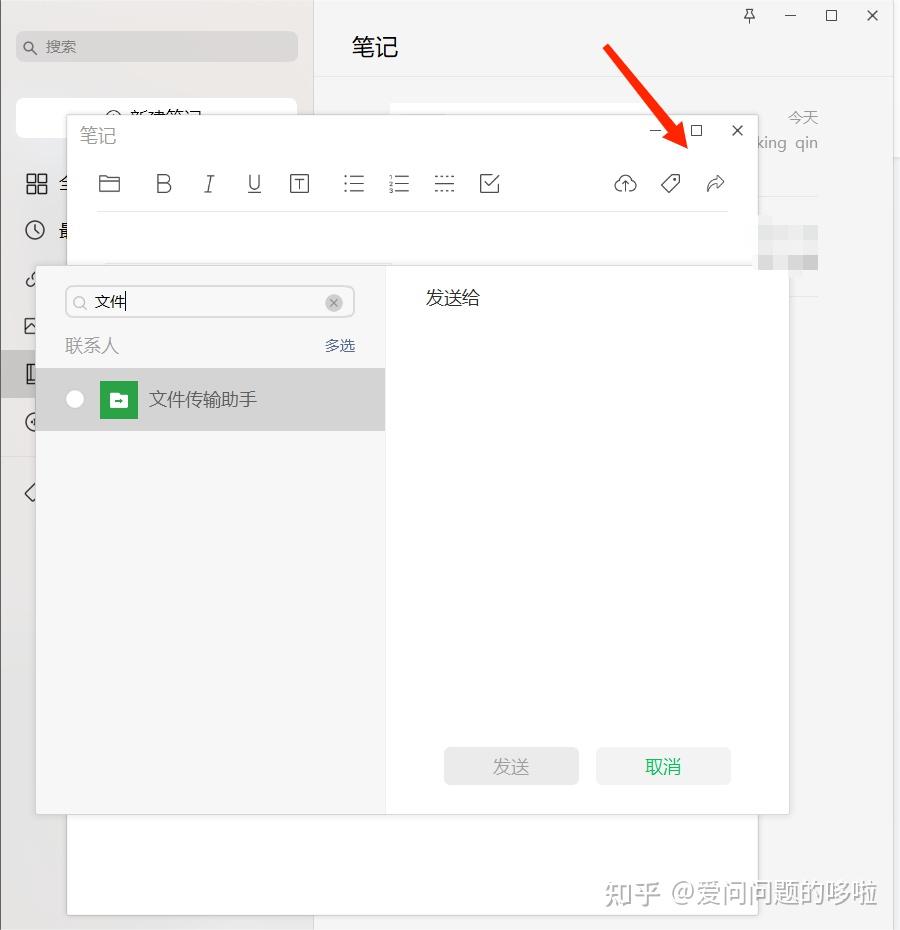 其次打开电脑端微信,打开收藏-笔记,将该笔记转发给文件传输助手。