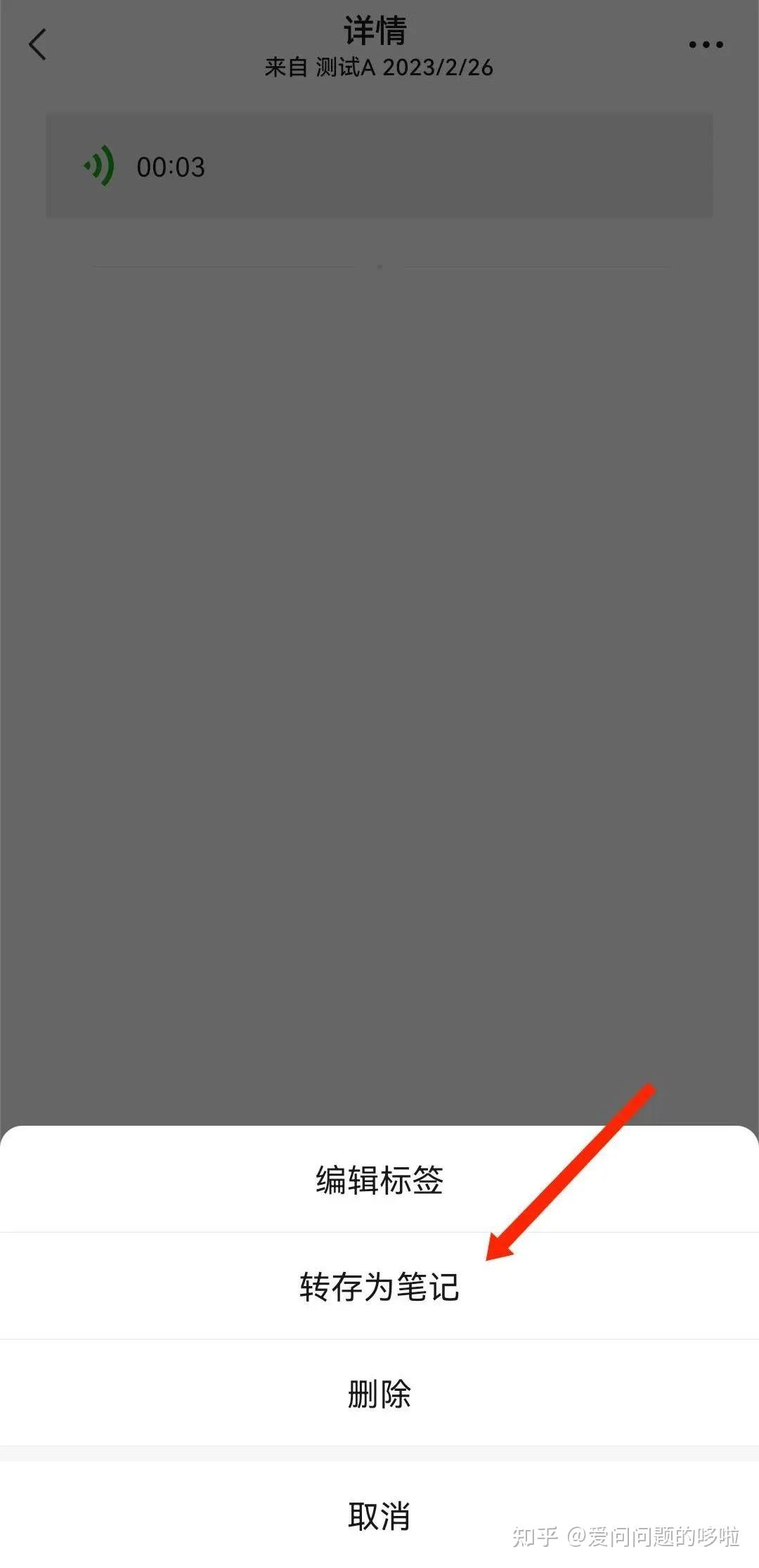 之后在收藏栏里找到收藏的语音,点开后保存为笔记。